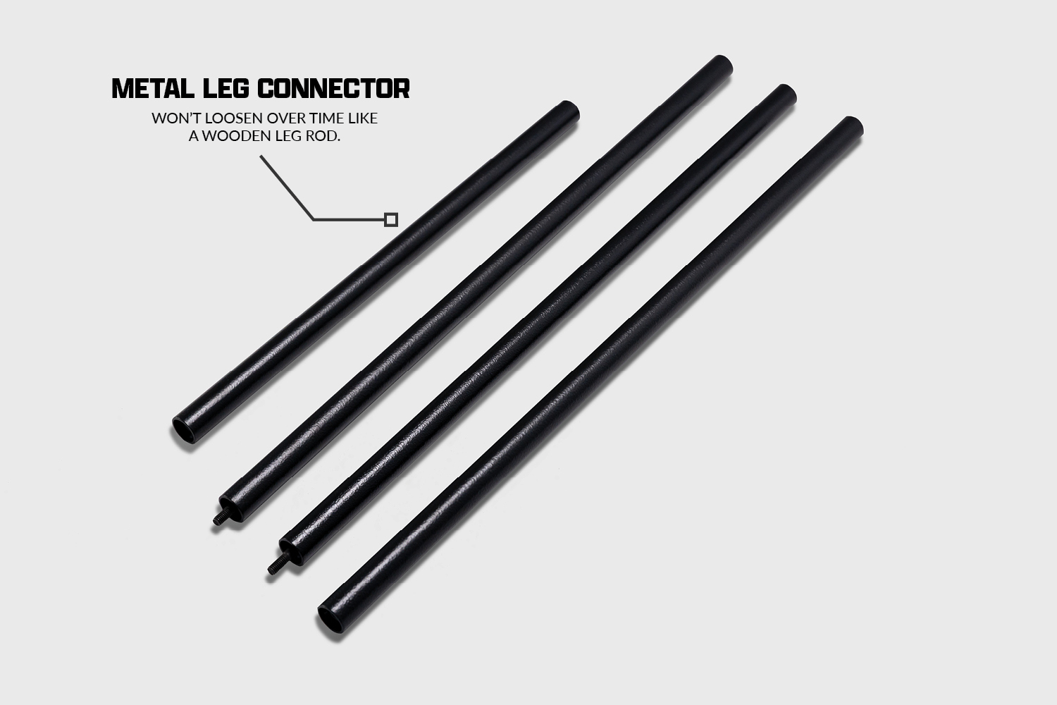 - Tubular legs with metal connecting rod