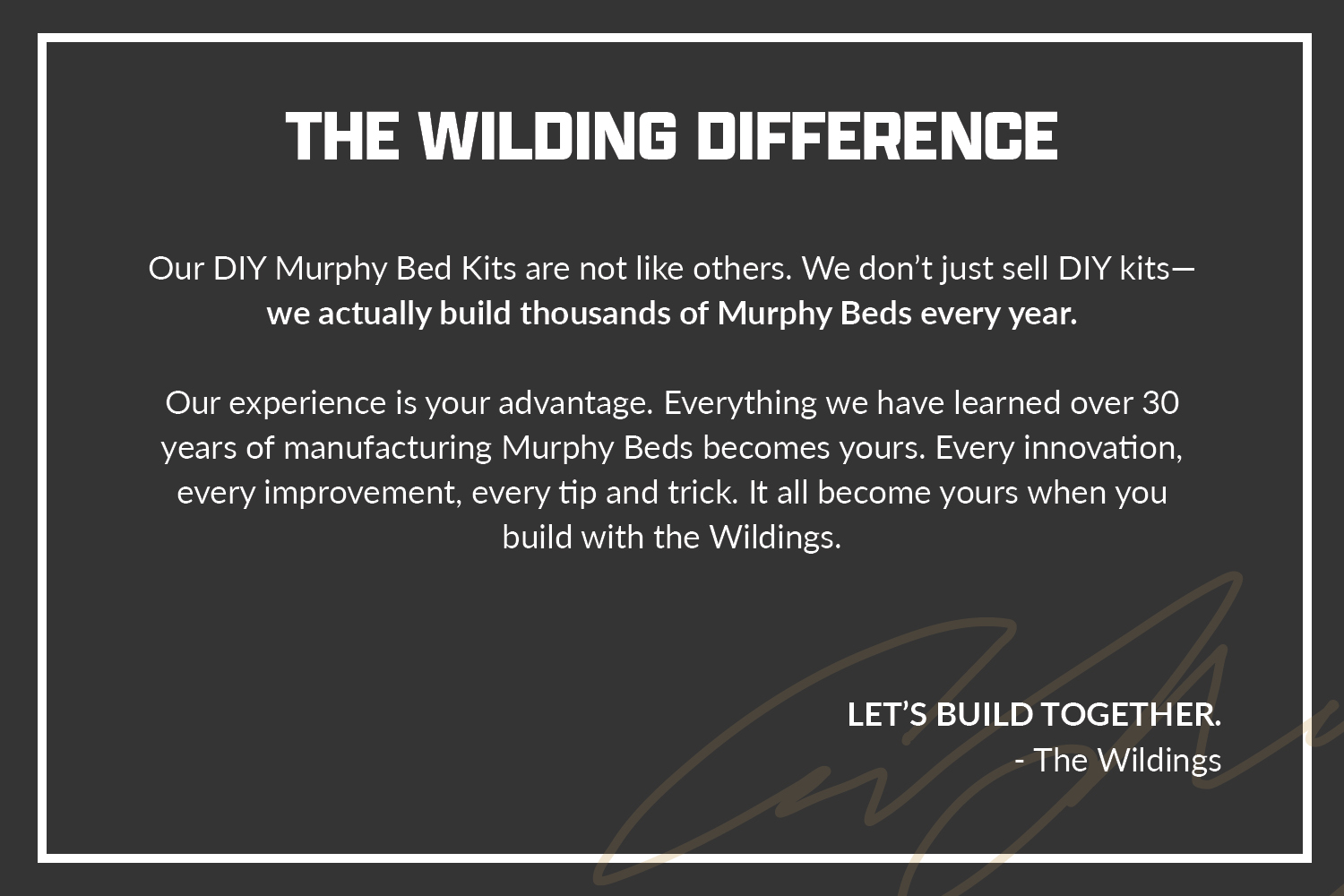Care should be taken in selecting the material you use to build your Murphy bed to ensure it is safe and comfortable to operate. Please adhere to the guidelines below in planning your Murphy bed and purchasing construction materials. Wilding Wallbeds is not responsible for any damage or injuries sustained from the use of improper construction materials.